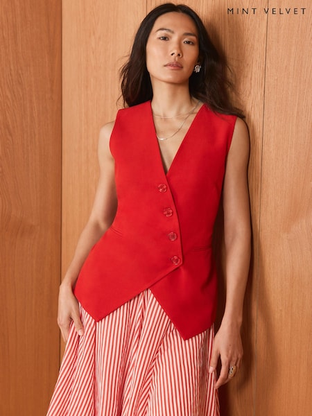 Mint Velvet Red Tailored Tie Back Waistcoat