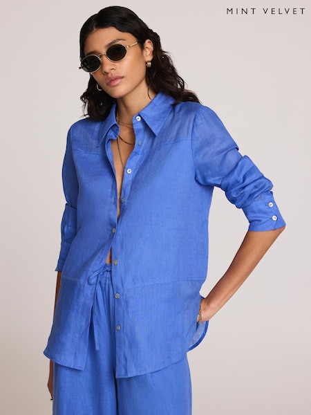 Lipsy Rinse Wash Denim Cinched Waist Collared Shirt