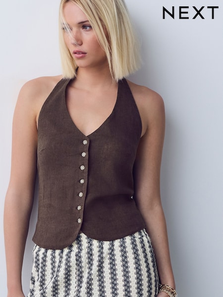 Chocolate Brown Halterneck Waistcoat with Linen