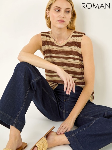 Pure Collection Brown Wool Cashmere Scalloped Tank Top
