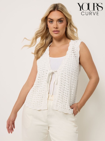 Yours Curve Cream Scallop Edge Knitted Waistcoat