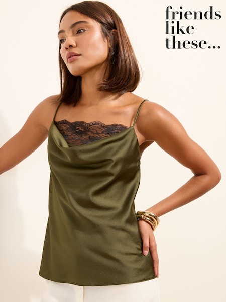 Friends Like These Olive Green Lace Trim V-Neck Satin Cami