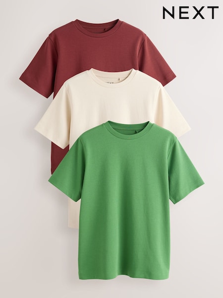 Green/Ecru/Red Heavyweight Basic T-Shirts 3 Pack