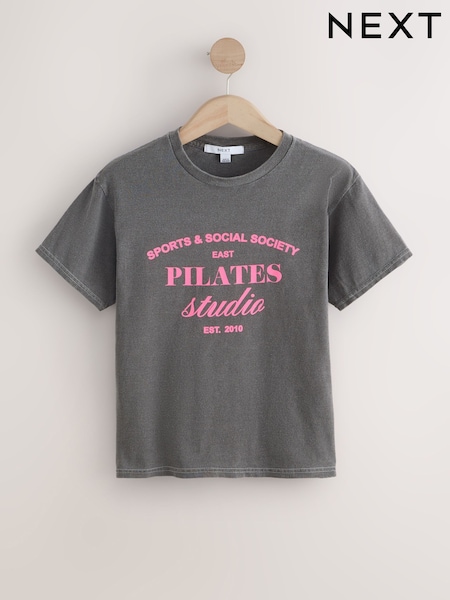 Charcoal Grey Graphic Pilates Short Sleeve T-Shirt
