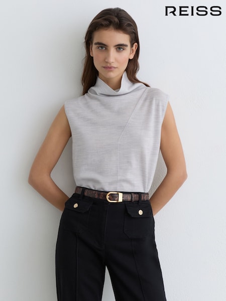 Reiss Grey Marl Honey Wool Funnel-Neck Sleeveless Knit Top