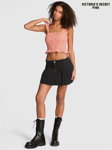 Victoria's Secret Pink Peach Tree Orange Floral Print Smocked Ruffle Top
