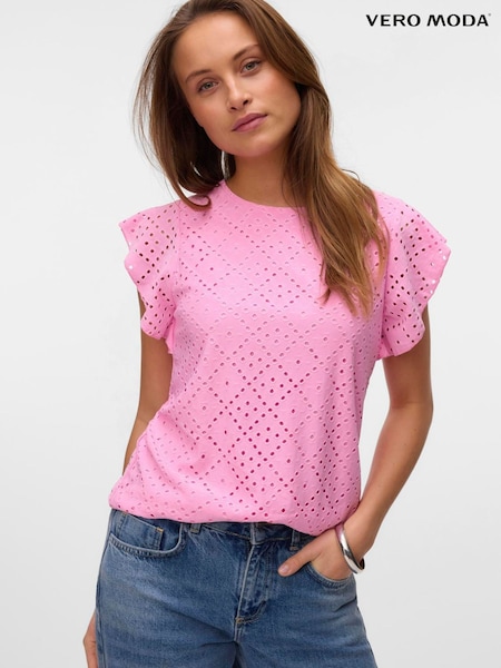 VERO MODA Pink Frill Sleeve Broderie Top