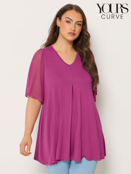 Yours Curve Purple Pleated Front Swing Mesh Sleeve Top