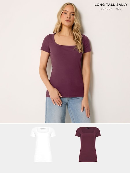 Long Tall Sally Purple Square Neck Ribbed T-Shirts 2 Pack