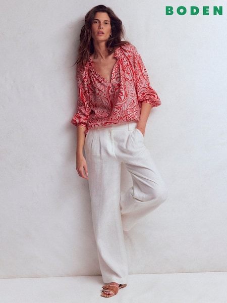 Boden Red Cleo Linen Blouse