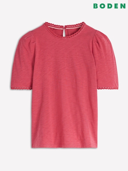 Yumi Red Shimmer Print Mesh Stretch Fitted Top