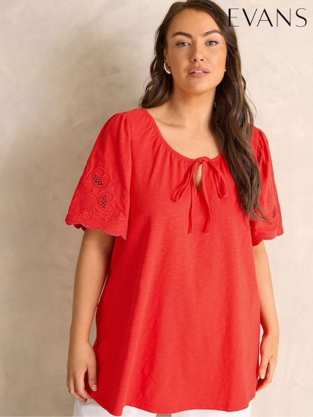 Celtic & Co. Red Linen Blend Printed Drop Shoulder Top