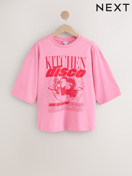 White Graphic Disco Ball Oversized Cotton Rich T-Shirt