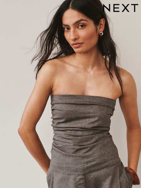 Ecru/Black Pinstripe Smocked Bandeau Top