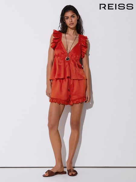 Reiss Orange Brook Ruffle Trim Side-Tie Babydoll Top