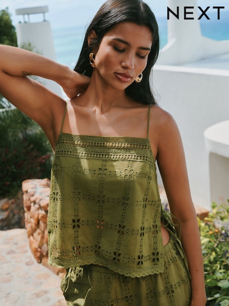 Abercrombie & Fitch Blue Cotton Cutwork Cami Top