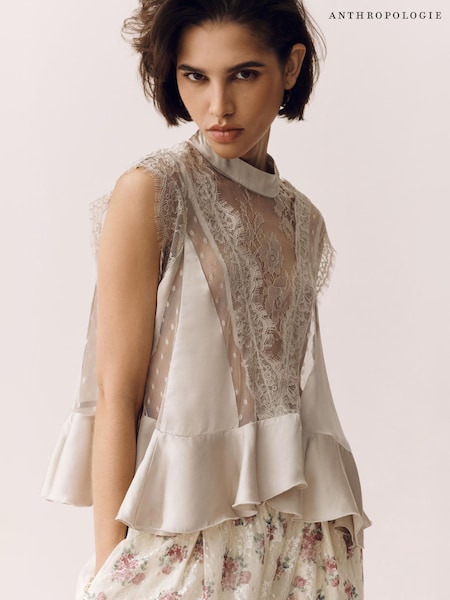 Anthropologie Sheer Lace Peplum Cream Blouse
