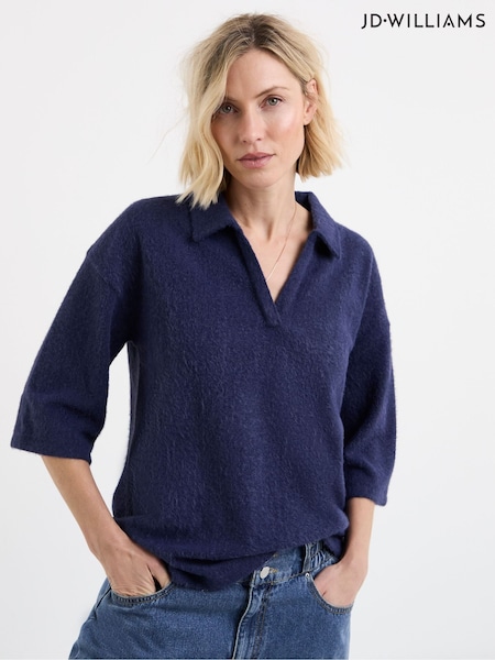 JD Williams Blue Brushed Soft Touch Collared Top
