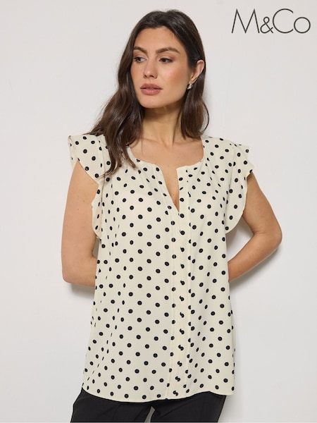 Mint Velvet Black Polka Dot Print Ruffle Blouse