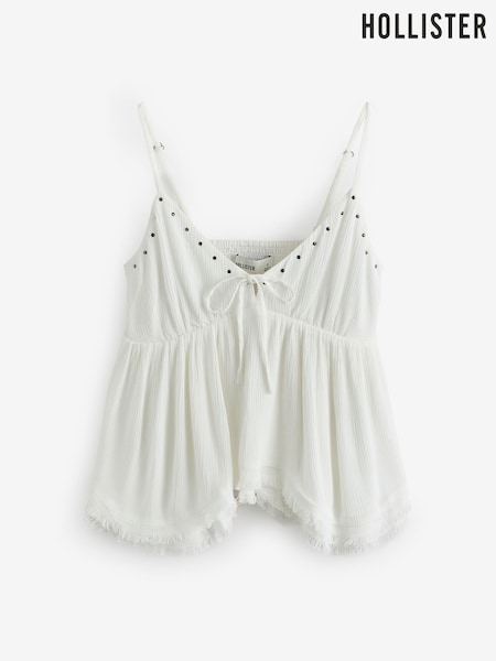 Hollister White Boho Ruffle Hem Strappy Cami Top