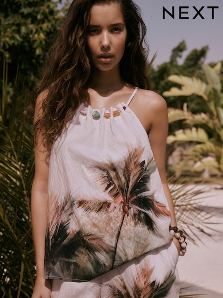 River Island Black Palm Print Tank Containing Linen Tank Top