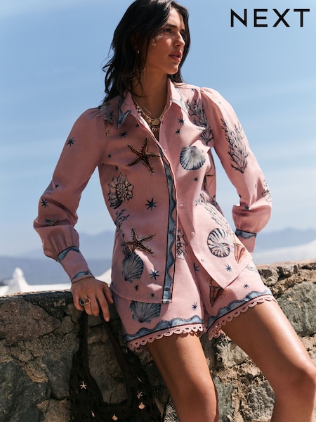Pink Shell Print Long Sleeve Lightweight Shirt