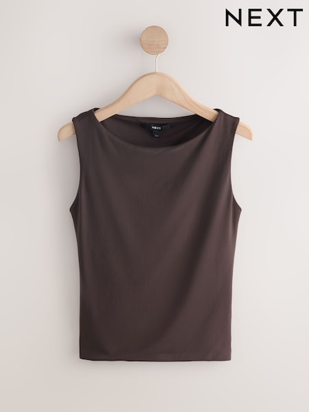 Chocolate Brown Soft Touch Slinky Backless Tie Sleeveless Top