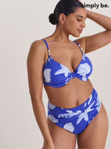 Simply Be Blue Shell Print Bead Detail Bikini Briefs