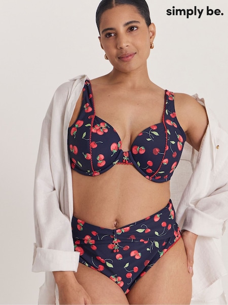 Simply Be Blue Cherry Print Bikini Briefs