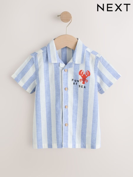 Blue/White Stripe Short Sleeve Revere Collar Printed Shirt (3mths-7yrs)