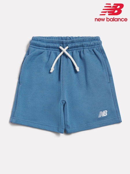 New Balance Blue Kids Brush Back Stacked Logo Shorts