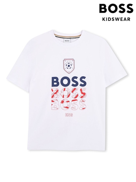 BOSS White World Cup Logo Short Sleeve Crew Neck T-Shirt