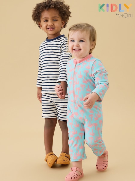 KIDLY by MORI Blue Front Zip Sunsafe Swimsuit