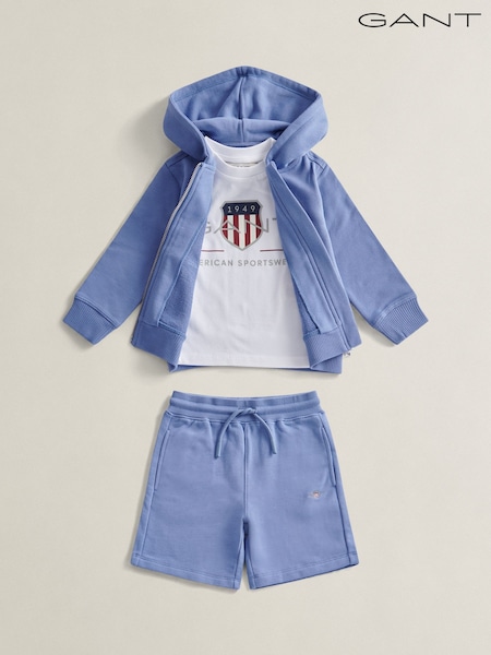 GANT Blue Shield Full Zip Hoodie, T-Shirt & Sweat Short Set