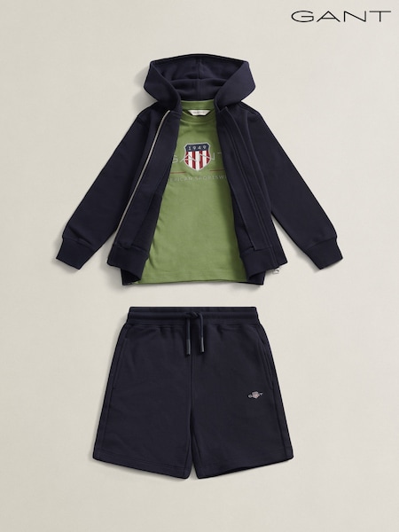 GANT Navy Blue Shield Full Zip Hoodie, T-Shirt & Sweat Short Set