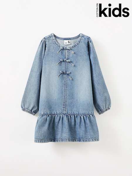 Cotton On Mid Blue Betty Bow Front Denim Dress