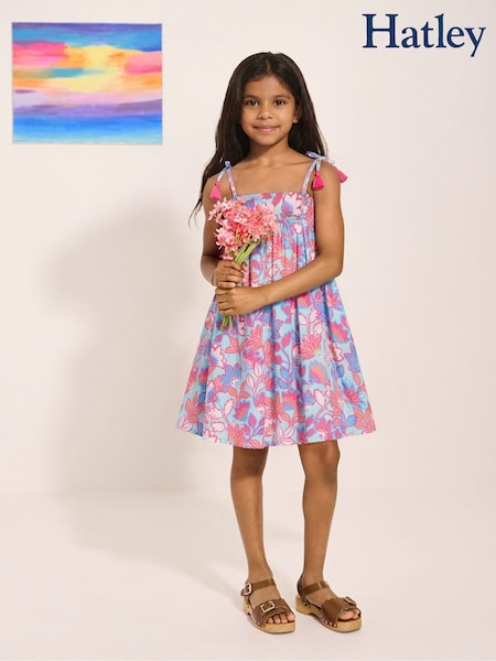 Hatley Blue Tencel Embroidered Pinafore Dress