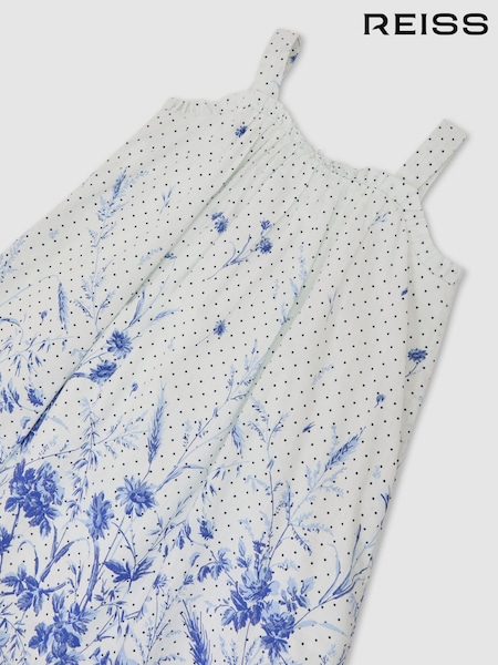 Reiss Blue Print Solar 13-14 yrs Cotton Floral-Print Swing Dress
