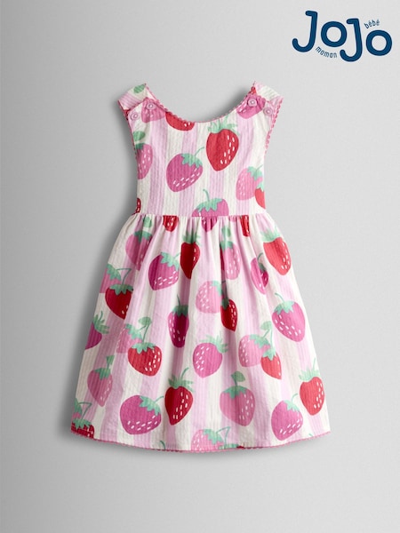 JoJo Maman Bébé Pink Strawberry Cross Back Sundress