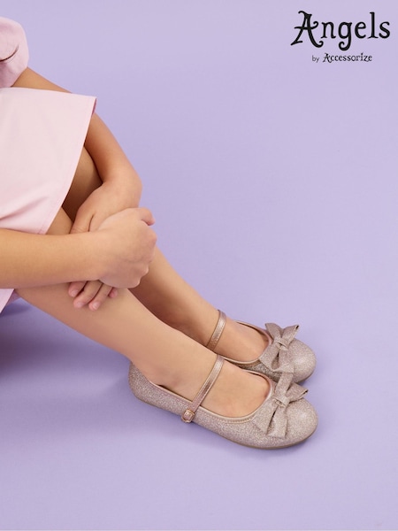 Angels By Accessorize Pink Girls Bow Glitter Ballet Flats