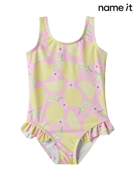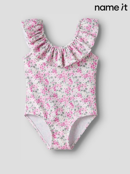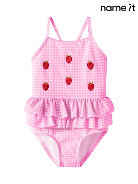 Name It Pink Cross Strap Frill Waist Swimsuit