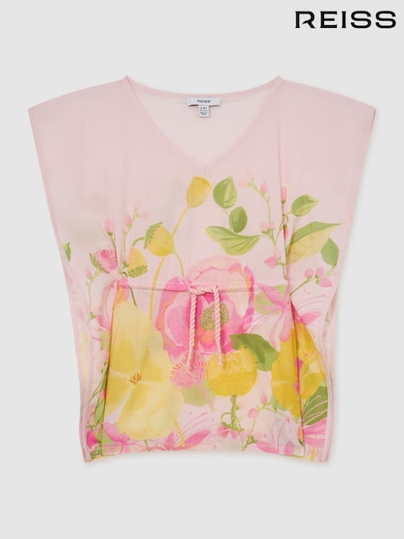 Reiss Pink Print Kila 9-13 yrs Cotton Floral-Print Kaftan