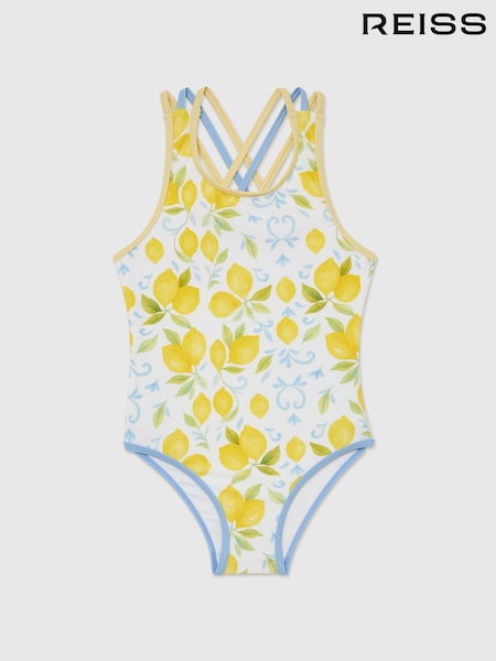 Reiss Yellow Yasmin 3-9 yrs Printed Cross-Strap Swimsuit