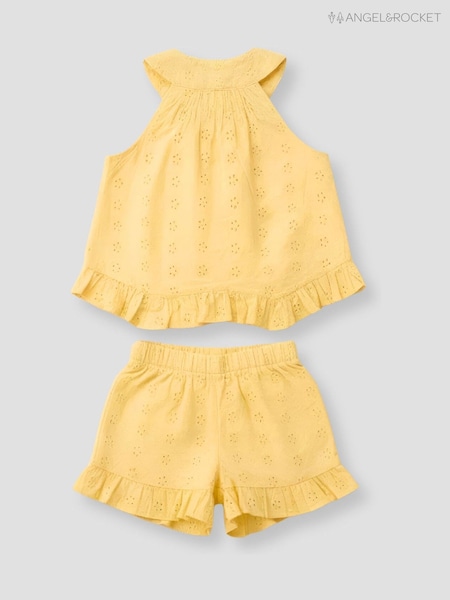 Angel & Rocket Yellow Leona Broderie Frill Top & Shorts Set