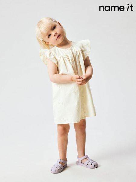 Name It Yellow Puff Sleeve Woven Dress With Cut Out Heart Detail