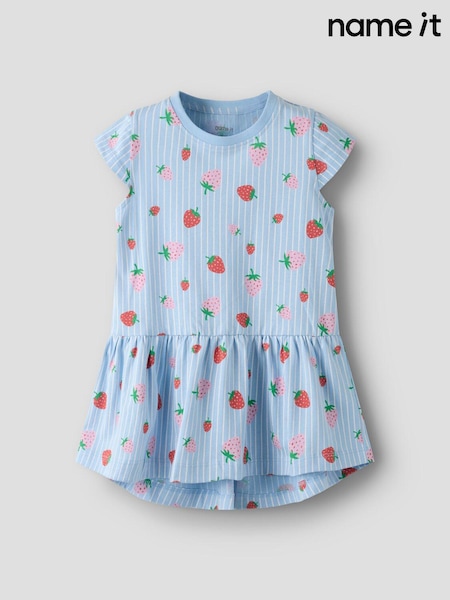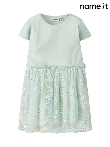 Name It Green Cotton Ribbed Short Sleeve Floral Tulle Dress