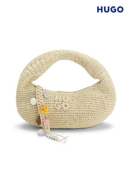 HUGO Natural Zeya Raffia Stacked Logo Slouch Shoulder Bag