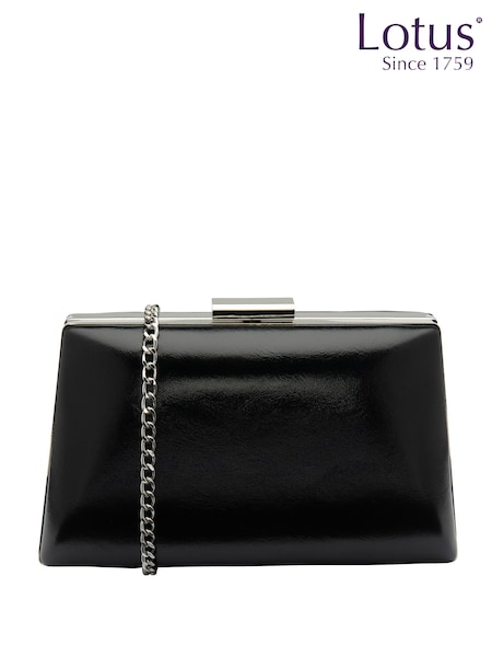 Lotus Black Clutch Bag with Chain