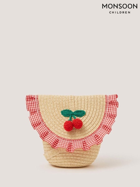 Monsoon Natural Cherry Gingham Straw Bag