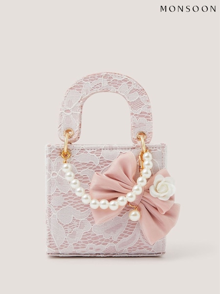 Monsoon Pink Bow Charm Lace Bag